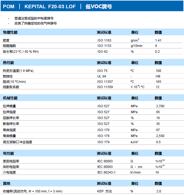 「低VOC聚甲醛Kepital F20-03LOF」